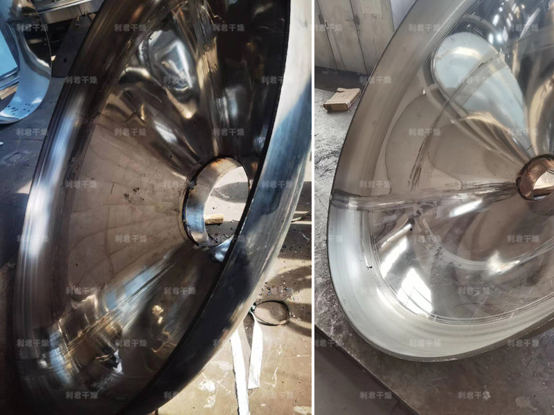 ◎在動(dòng)力驅(qū)動(dòng)下,罐體作緩慢旋轉(zhuǎn),罐內(nèi)物料不斷地混合,從而達(dá)到強(qiáng)化干燥的目的。