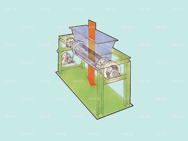 ◎水平擠出成型機(jī): 由加料斗、二根輥?zhàn)雍蚒形振動(dòng)網(wǎng)構(gòu)成。以增大物料的表面積為目的,造粒物料與振動(dòng)網(wǎng)接觸,由旋轉(zhuǎn)輥?zhàn)拥膹?qiáng)制壓力擠出網(wǎng)外,形成圓柱形的顆粒。